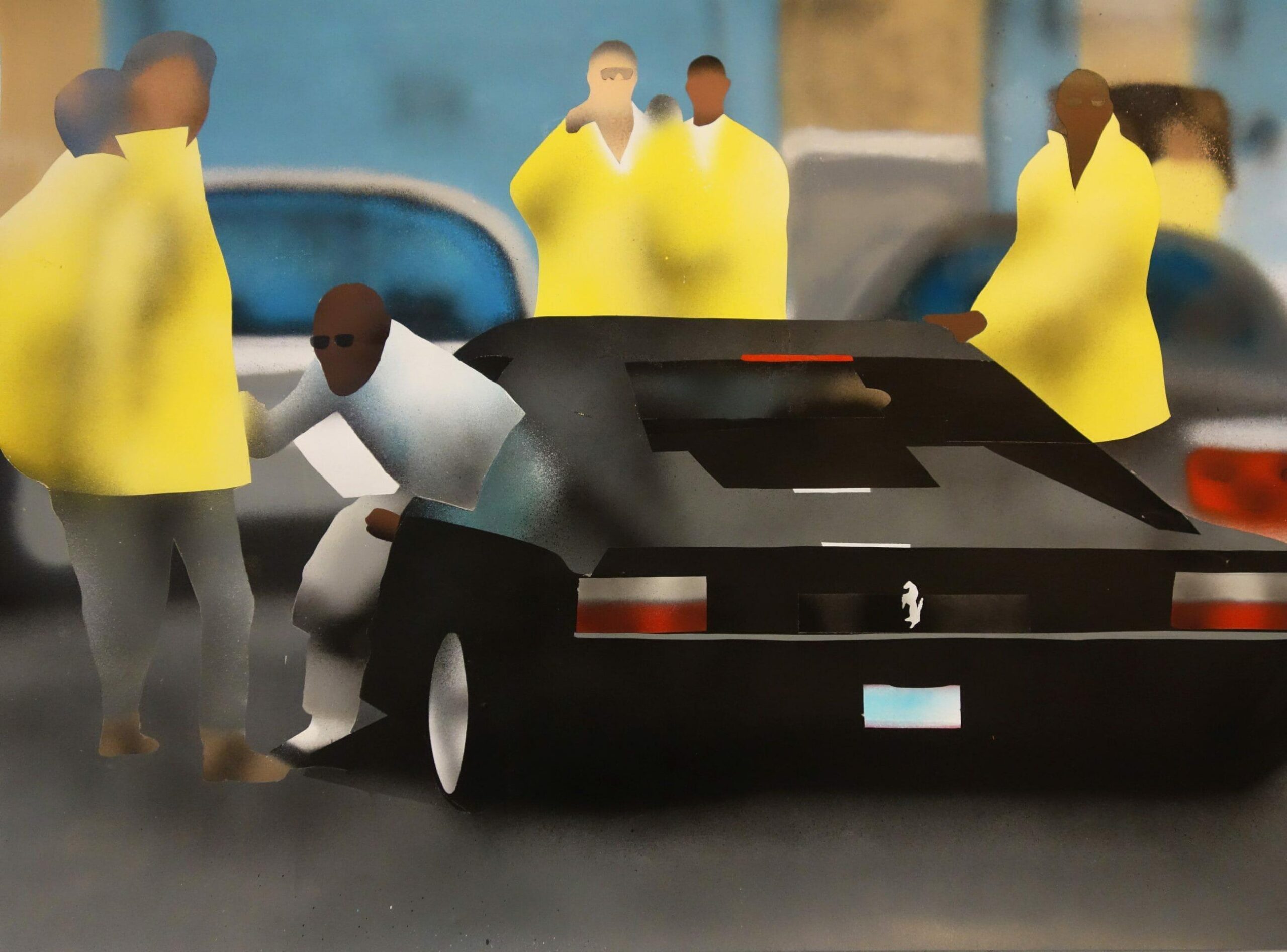 A master of the sprayed blurred technique, Woc employs spray paint and pencils to bring to life his visions. Through the unconventional fusion of these mediums, he immortalizes the fleeting nature of digital visuals, preserving their meaning far beyond their transient digital existence, while reflecting the ephemeral nature of viral internet phenomena.