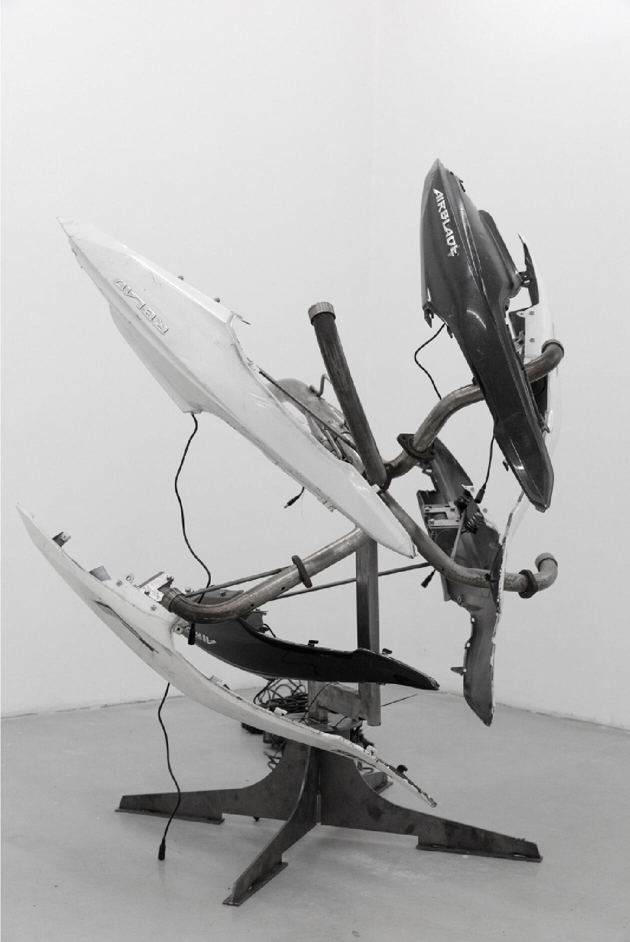 Donna Haraway famously wrote, “Our machines are disturbingly lively, and we ourselves frighteningly inert.” This resonates strongly in your kinetic sculptures, which appear animated yet remain confined to mechanical patterns. How do you interpret this paradox in your work?