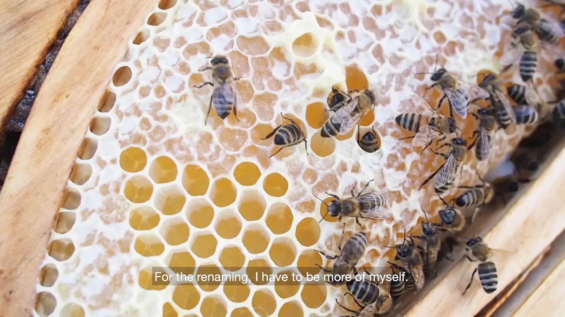 In the work in question, this approach is applied not only to juxtaposing the monologue and the bees, but also to casting Mona: I asked her to be the interpreter solely because of her role as the press person, a position that translates plurality to singularity, even before I knew her voice and way of speech. I was simply curious how it would go, and I would enjoy and accept any consequence. It’s not a question of quality, but of encounter. This attitude is also based on my joy in learning how unique and different each and every person is, including myself, especially when it is crystalised in the form of artworks.