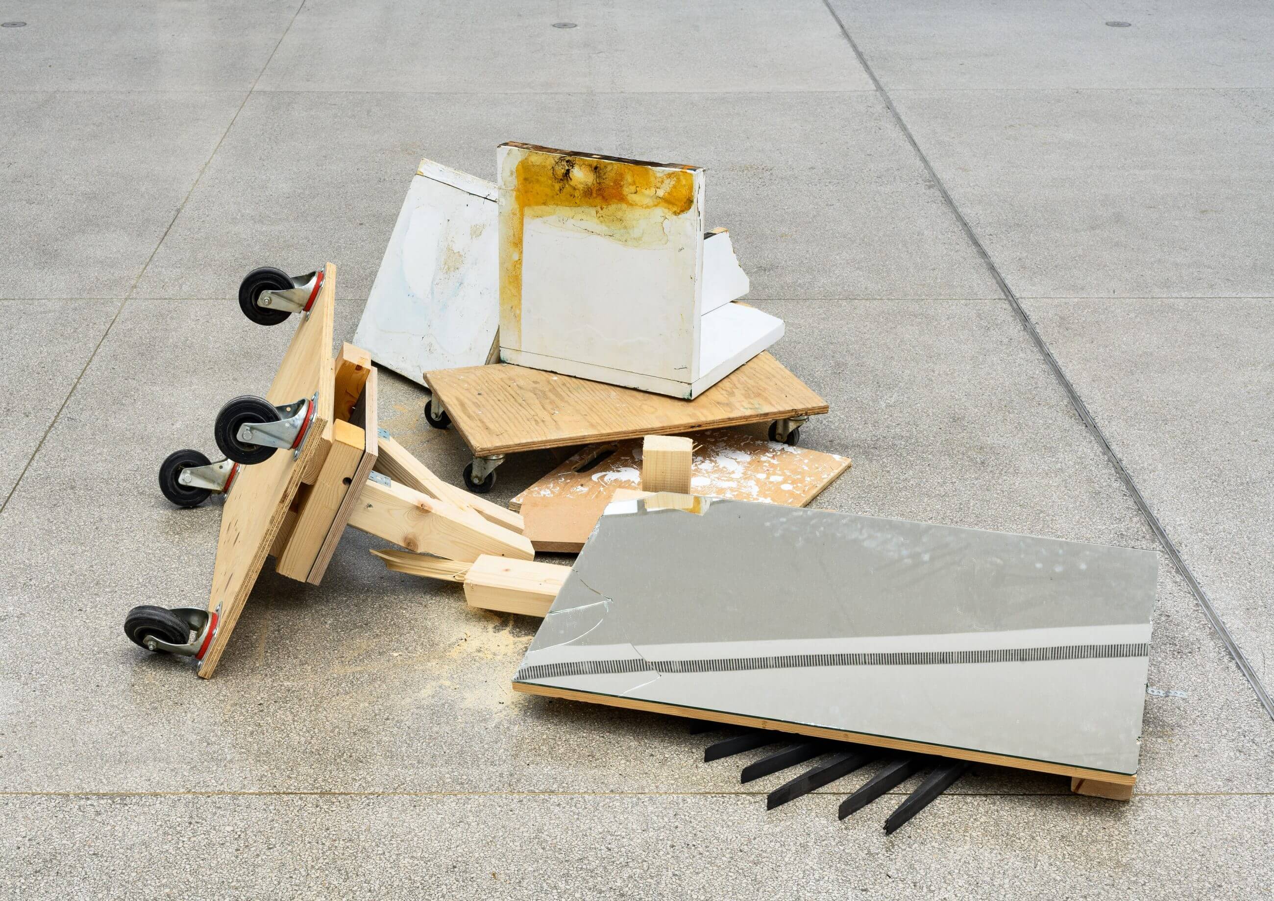 When invited to have an exhibition, then, how can you trigger the above-mentioned double effect? My strategy, therefore, is to perform a conceptual procedure strictly on site, to conduct every step within the ecological sphere of the empty space, ,while using found elements only. This way of working makes your position analogous to a parasite: you step into the host space with your hands empty, without bringing any alien materials from anywhere except your own body, and generate new objects and situations just by reconfiguring already existing elements, mediated by your own body and life.